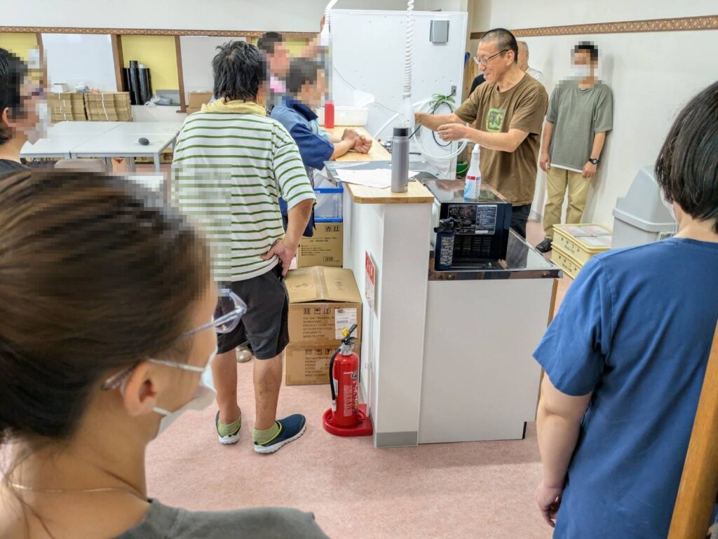 昼食は、ピザとかまど炊きご飯のおにぎり。