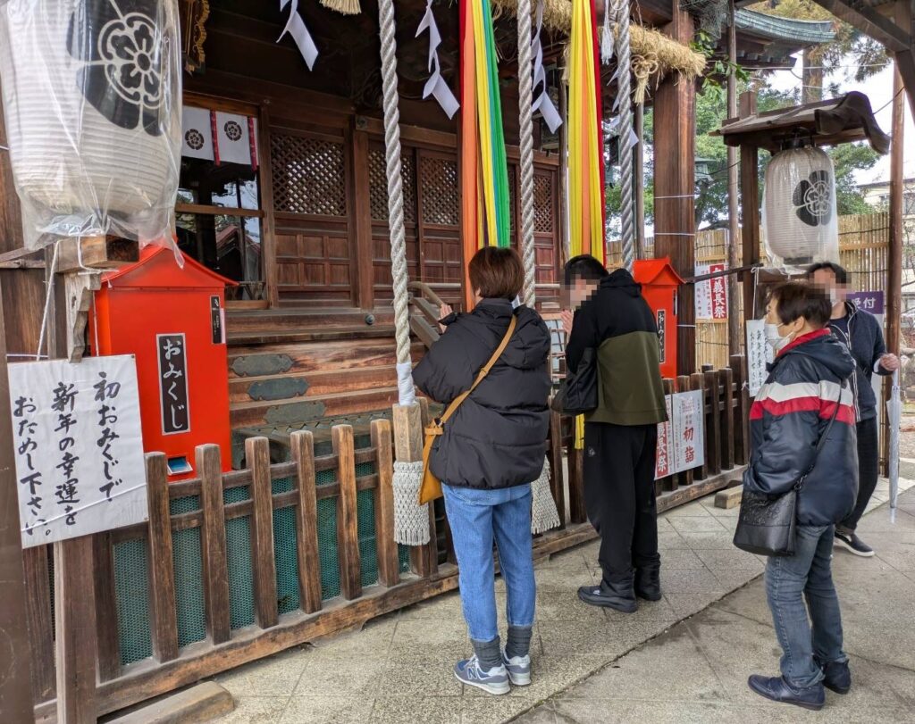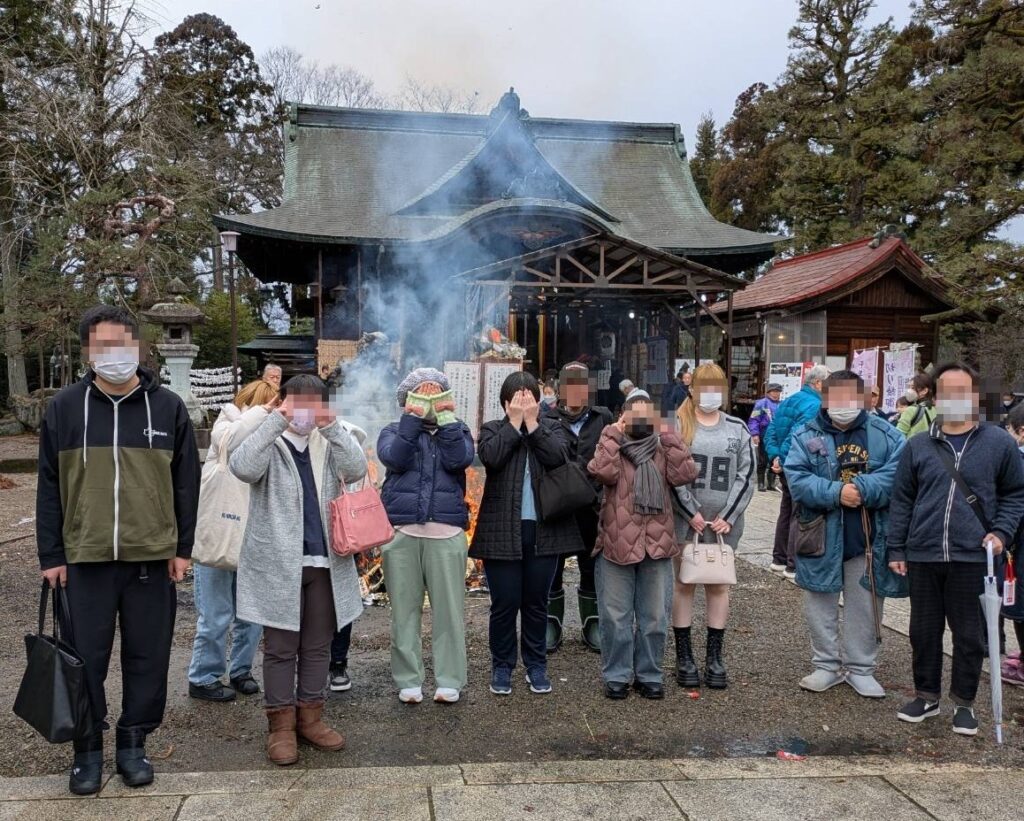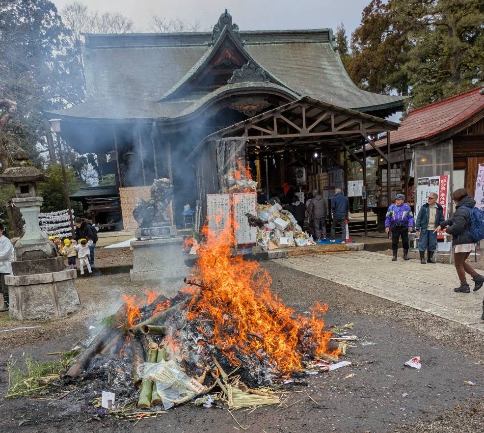 当日は、左義長が営まれ、ご利益が多く、大勢の人で賑わっていました。